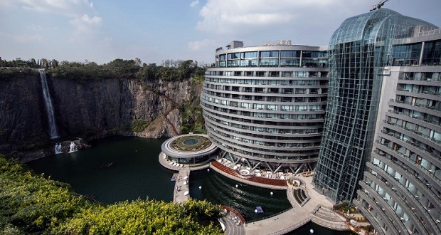 Un hotel de lujo construido en el interior de una inmensa cantera desafectada abrió este jueves en China. Destinado a una clientela adinerada (unos 17.500 pesos argentinos la noche), su construcción representó un verdadero desafío arquitectónico.