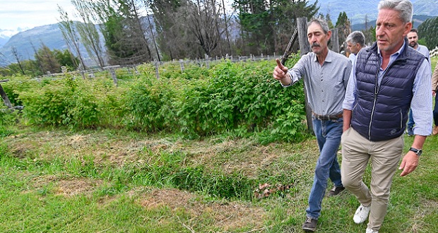 Roberto destacó el apoyo del Gobierno Provincial: “Nos entregó 3.000 plantines de frambuesas que ya están plantados en un lote que se quemó, y se recuperaron a fuerza de fertilizante y agua, y ahora estamos en carrera otra vez”.