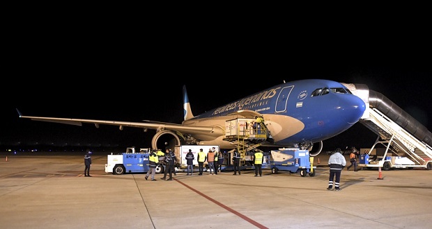 El Airbus 330-200 despegó a las 12.55 desde Ezeiza y, tras una escala intermedia en Madrid tanto a la ida como a la vuelta, se espera su regreso para las 19.10 del martes.