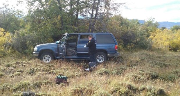 El vehículo fue hallado oculto entre la vegetación de un campo, ubicado en el Lote 14, de la localidad de Cholila, a unos 50 metros de un camino de servidumbre.