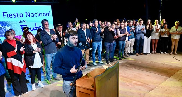 El gobernador del Chubut, Ignacio “Nacho” Torres, participó este viernes de la 36º Fiesta Nacional de la Fruta Fina que se realizó en El Hoyo, y tuvo a su cargo el discurso de inauguración de la misma, acompañado por el vicegobernador de la provincia, Gustavo Menna; el intendente local, César Salamín; funcionarios del gabinete chubutense; diputados provinciales; intendentes de localidades vecinas; concejales; fuerzas de seguridad; bomberos voluntarios; autoridades del Servicio Provincial del Manejo del Fuego; representantes de cooperativas locales; y un significativo número de vecinos que se acercaron al predio ferial de El Hoyo para participar de las actividades.