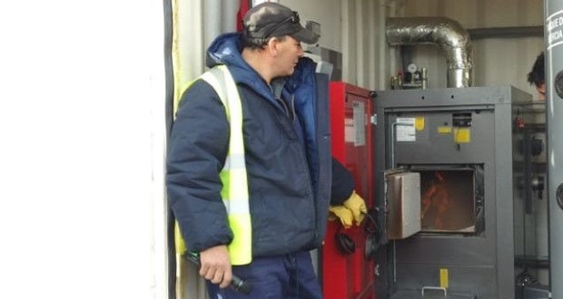 De este proceso, se seleccionó como proveedora de la caldera a la empresa Hargassner de Austria. El sistema de caldera está montada sobre un contenedor transportable que permite abastecerla de chips durante una semana y moverla a cualquier parte que se requiera, condicionado a que el lugar a calefaccionar cuente con sistema de radiadores. Posee alto nivel de automatización, lo que se traduce en confort para el usuario y aumento de la eficiencia de la calefacción.
