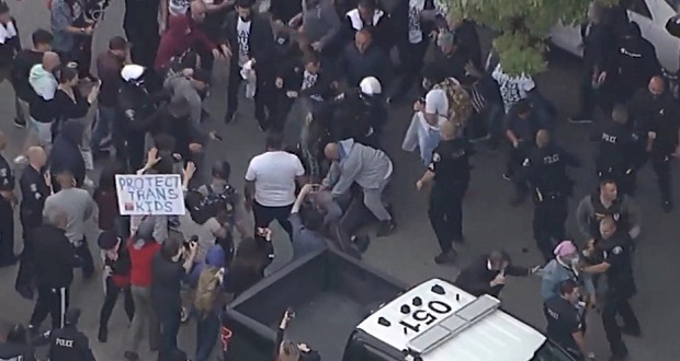 La Escuela Primaria Saticoy de North Hollywood fue escenario de una tensa protesta cuando más de 100 padres se congregaron en rechazo a una asamblea del Día del Orgullo. Portando pancartas con mensajes críticos como «No hay orgullo en emperifollarse» y «Dejen en paz a nuestros hijos», los manifestantes expresaron su descontento frente a la escuela. Al mismo tiempo, en el lado opuesto de la calle, aproximadamente 100 personas se unieron en una contraprotesta en apoyo a los derechos y la educación del colectivo LGBTQ+.
