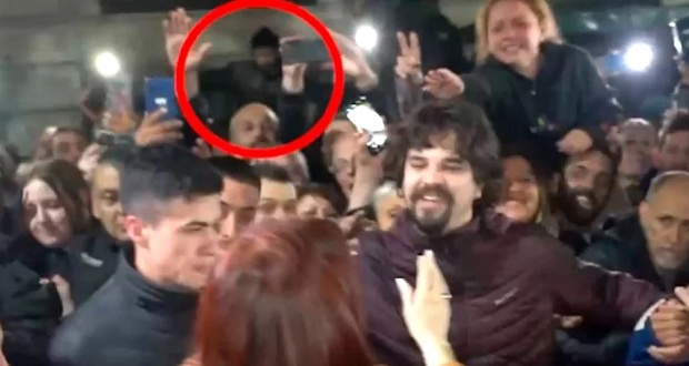 El hombre, ubicado detrás de los militantes que buscan aproximarse a la exmandataria, sería Fernando Sabag Montiel quien, cuatro días más tarde, intentaría asesinar a la Vicepresidenta, según los investigadores.