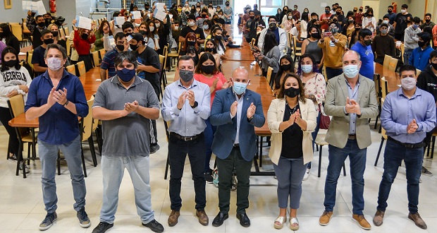El intendente de Puerto Madryn, Gustavo Sastre, encabezó el acto de entrega de certificados para personas que realizaron distintas capacitaciones laborales. Acompañado por todo el Gabinete, el Jefe Comunal destacó los alcances de estas iniciativas y celebró la reactivación económica que está viviendo la ciudad.