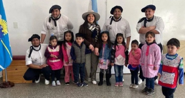 Una las voces jóvenes que recorre los escenarios de la provincia, Maite Guzmán, visitó el Jardín de Infantes N° 420 de El Maitén junto a sus músicos. La cantante, oriunda de Aldea Escolar – Trevelin, se caracteriza por llevar a los escenarios la cultura campera y la música de los pueblos, vestida con pilchas gauchas que revalorizan la identidad regional.