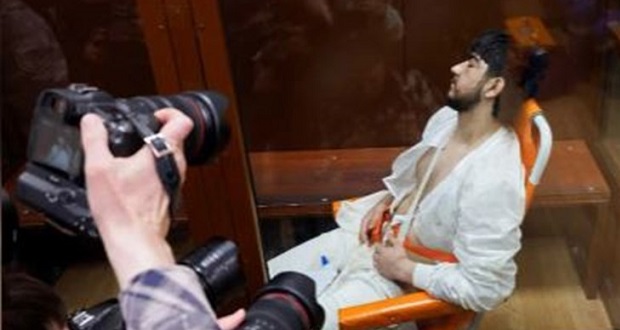 Un ciudadano de Tayikistán llamado Dalerdzhon Mirzoyev se apoyó en la celda de cristal mientras se leía la acusación de terrorismo.